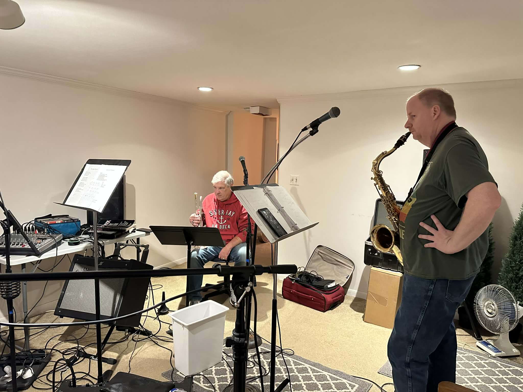 Steve is a great saxophonist, and as a singer, Steve is a great saxophonist. When not playing in the band, Steve uses his horn to hunt ducks.